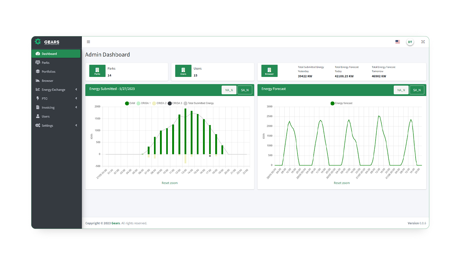 Ανάπτυξη πλατφόρμας διαχείρισης χαρτοφυλακίου για τον Φορέα Σωρευτικής Εκπροσώπησης GEARS. Εξειδικευμένη λύση για την αυτοματοποίηση της υποβολής εντολών στο Χρηματιστήριο Ενέργειας, της εκκαθάρισης των αμοιβών και της τιμολόγησης των παραγωγών/ιδιοκτητών πάρκων ΑΠΕ.